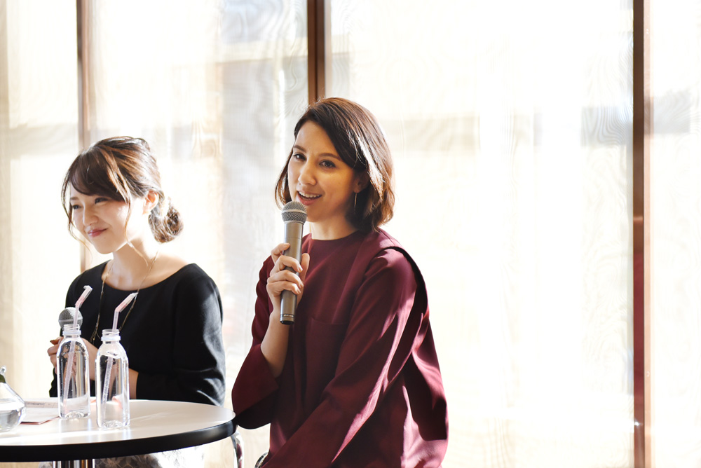 この日、政井さんはえんじ色のワンピースで登場。漆工芸が盛んな金沢に合わせて衣装をセレクトしてくださったそうです。すてきな気配りと前向きな姿勢、そしてチャーミングな笑顔。ポジティブなオーラを放つ政井さんから、いろいろなヒントをいただけたひと時でした。