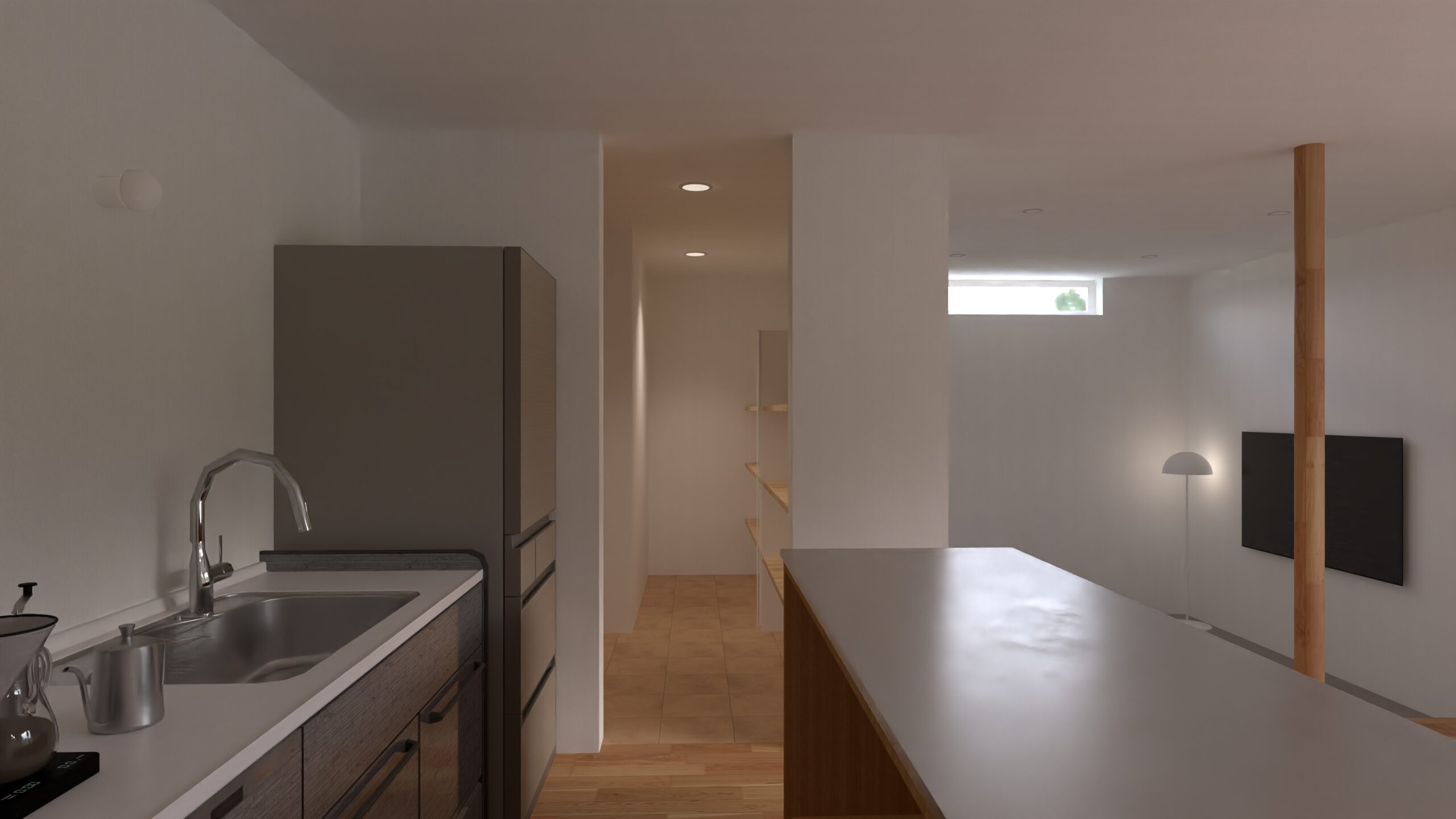 余白に映える、2型キッチンと化粧柱