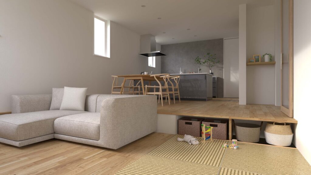 一段下がっていることでリビングと畳コーナーは