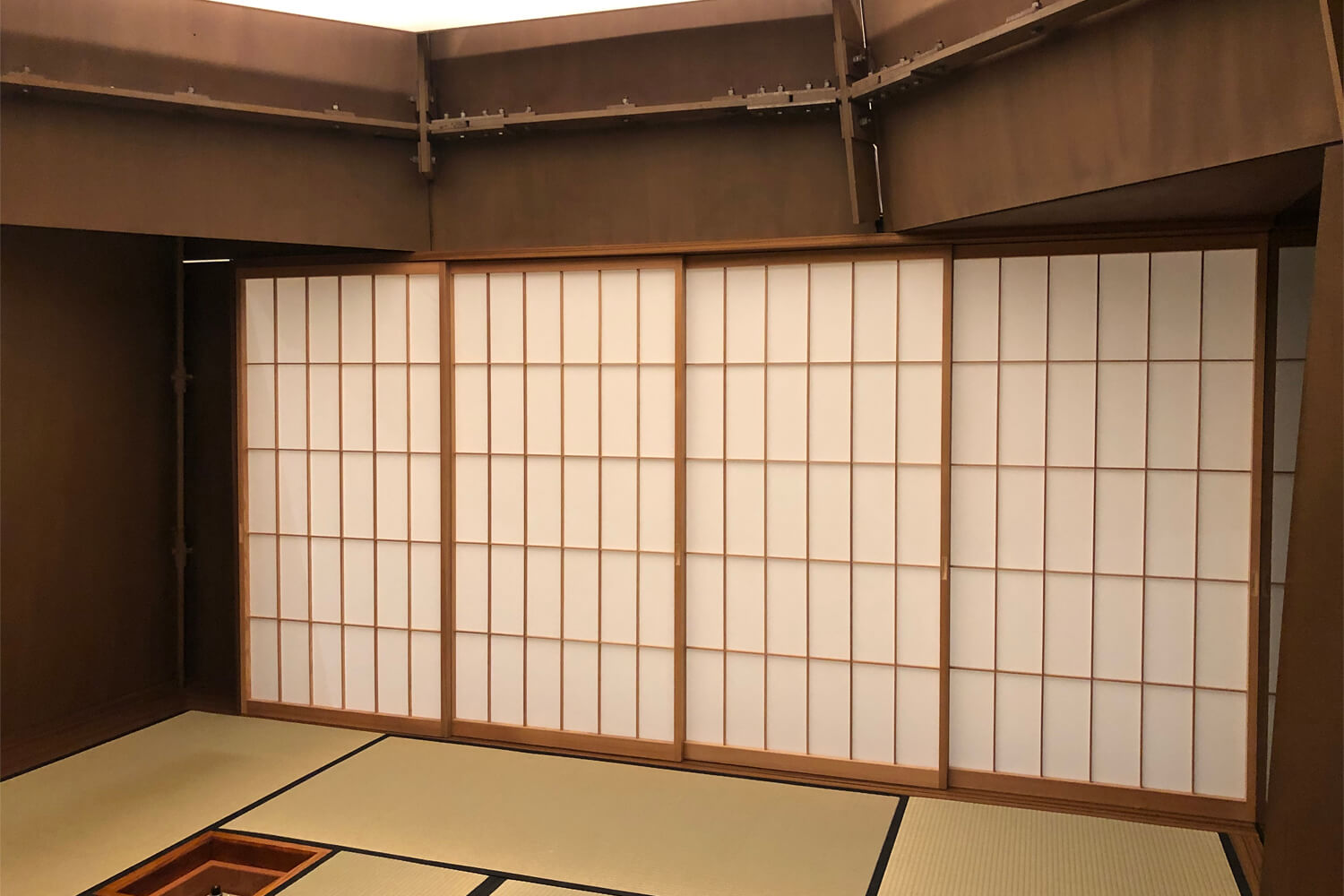 2019年6月、日本で仮組を行い施主による検査が行われ、同年11月にドイツ・ベルリンにて竣工。現地では日本の職人とドイツの職人が協力して工事を行い、ベルリン初となる茶室は現地メディアにも多数取り上げられています。
