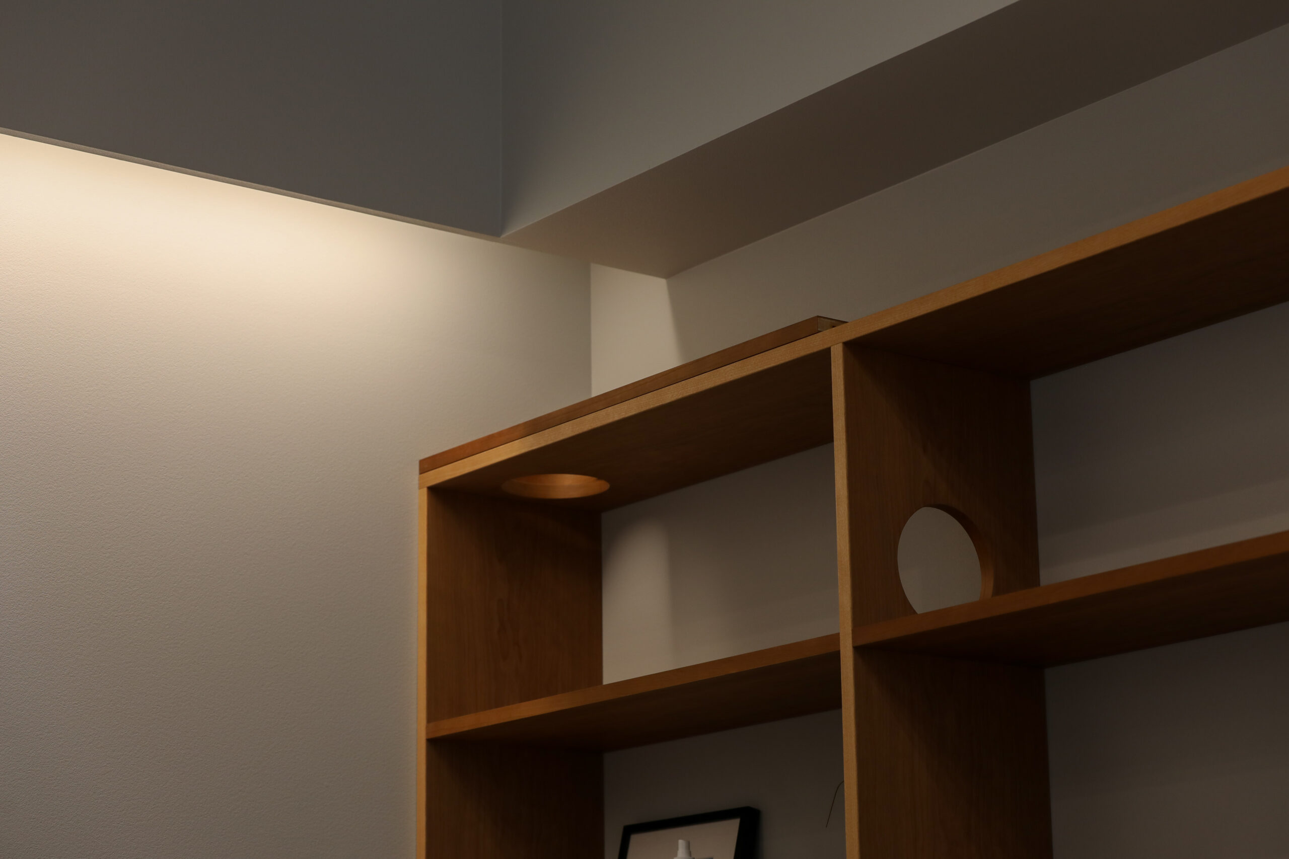 猫の動線であると同時に、人の視線を上へと導くデザイン要素。