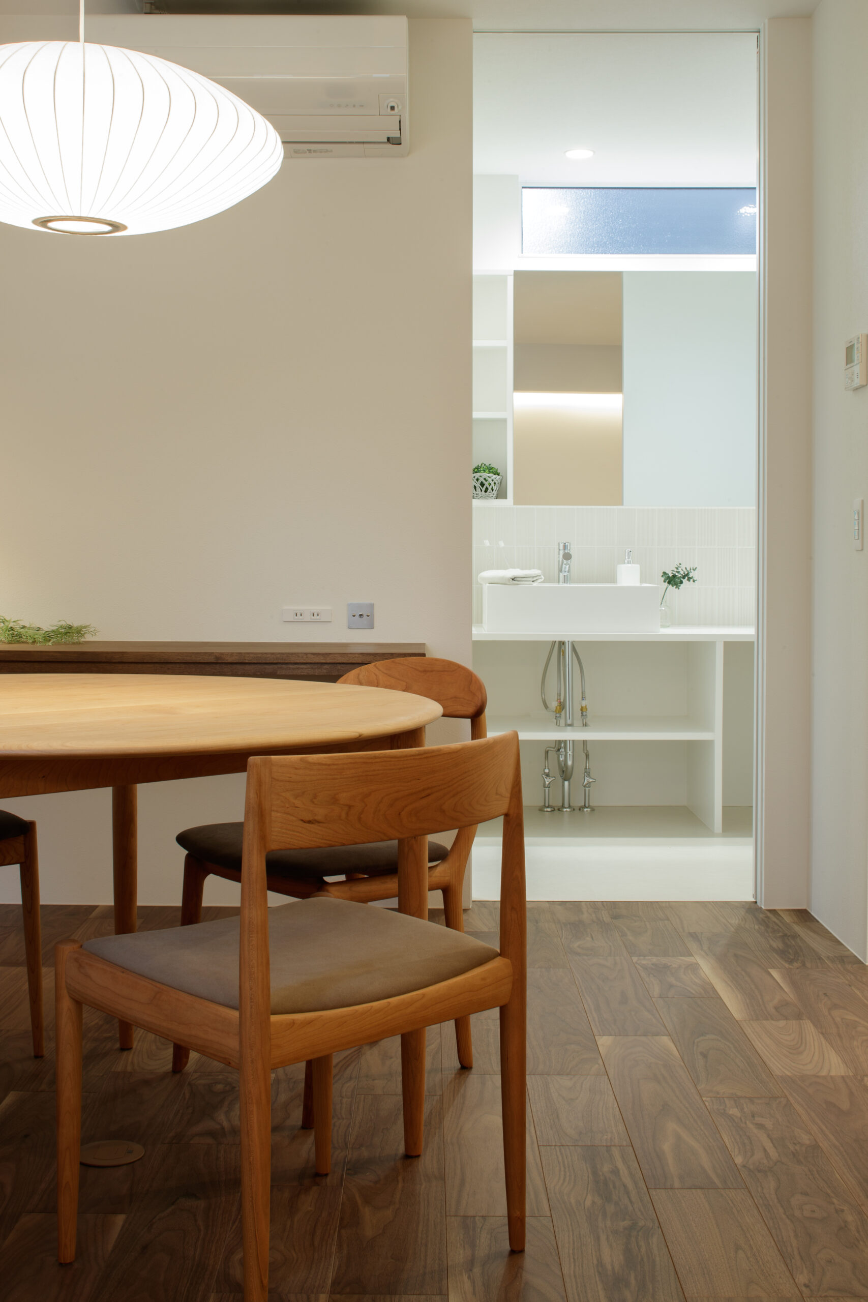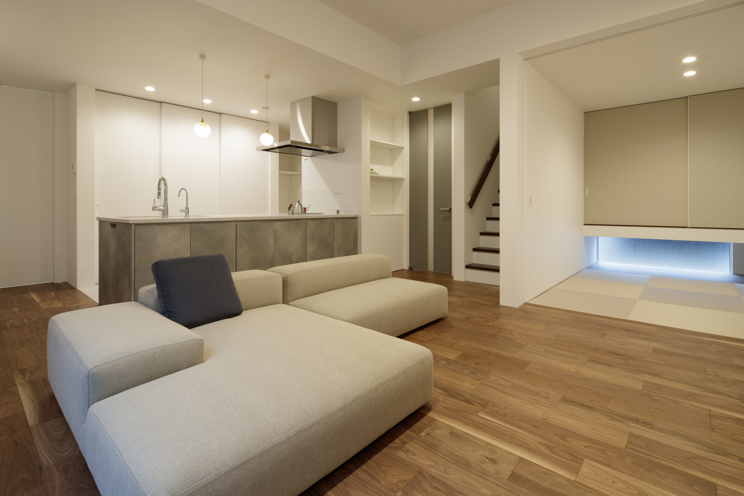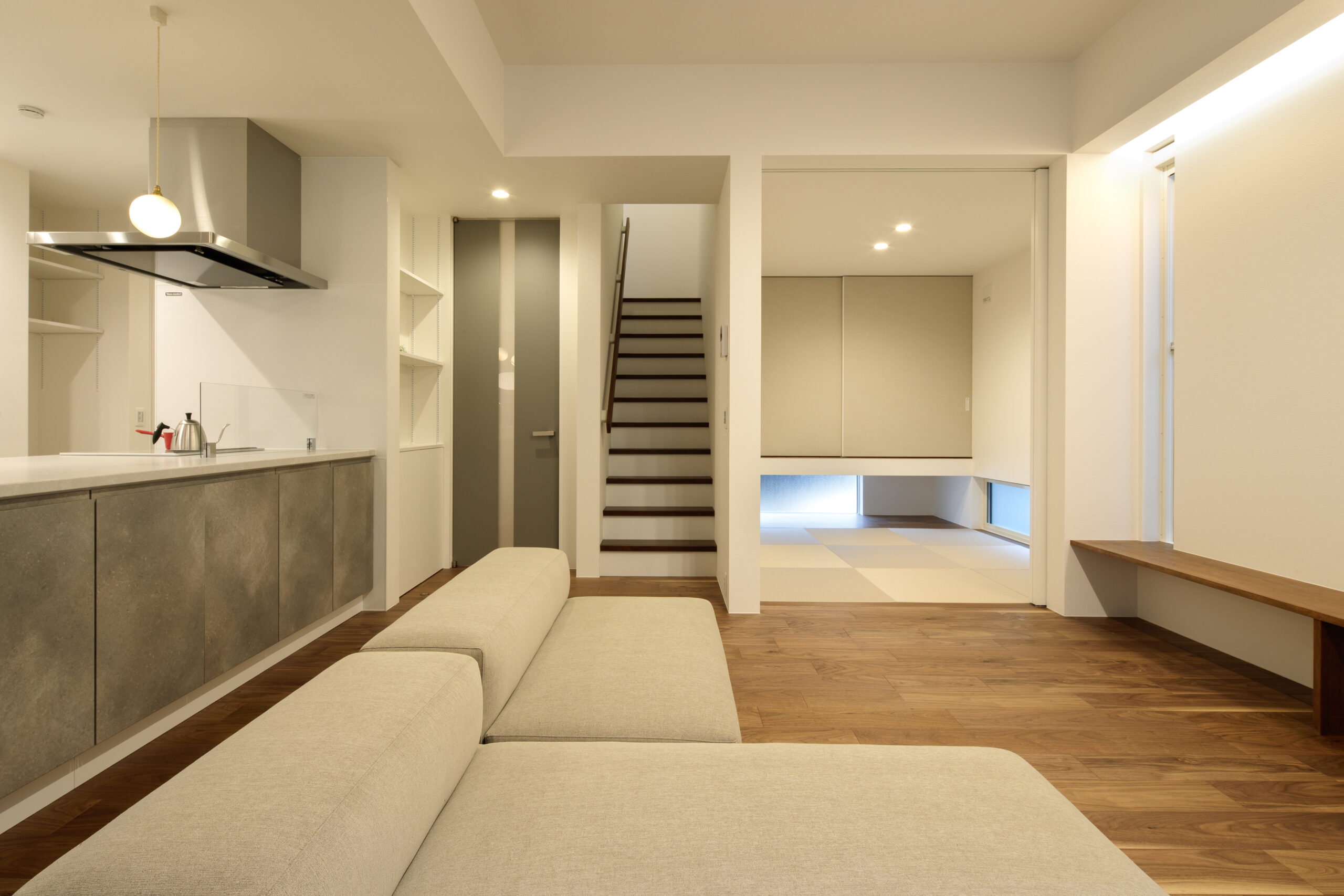 ナチュラルリビング階段勾配天井・高天井和室・タタミスペース回遊動線・動線が良い