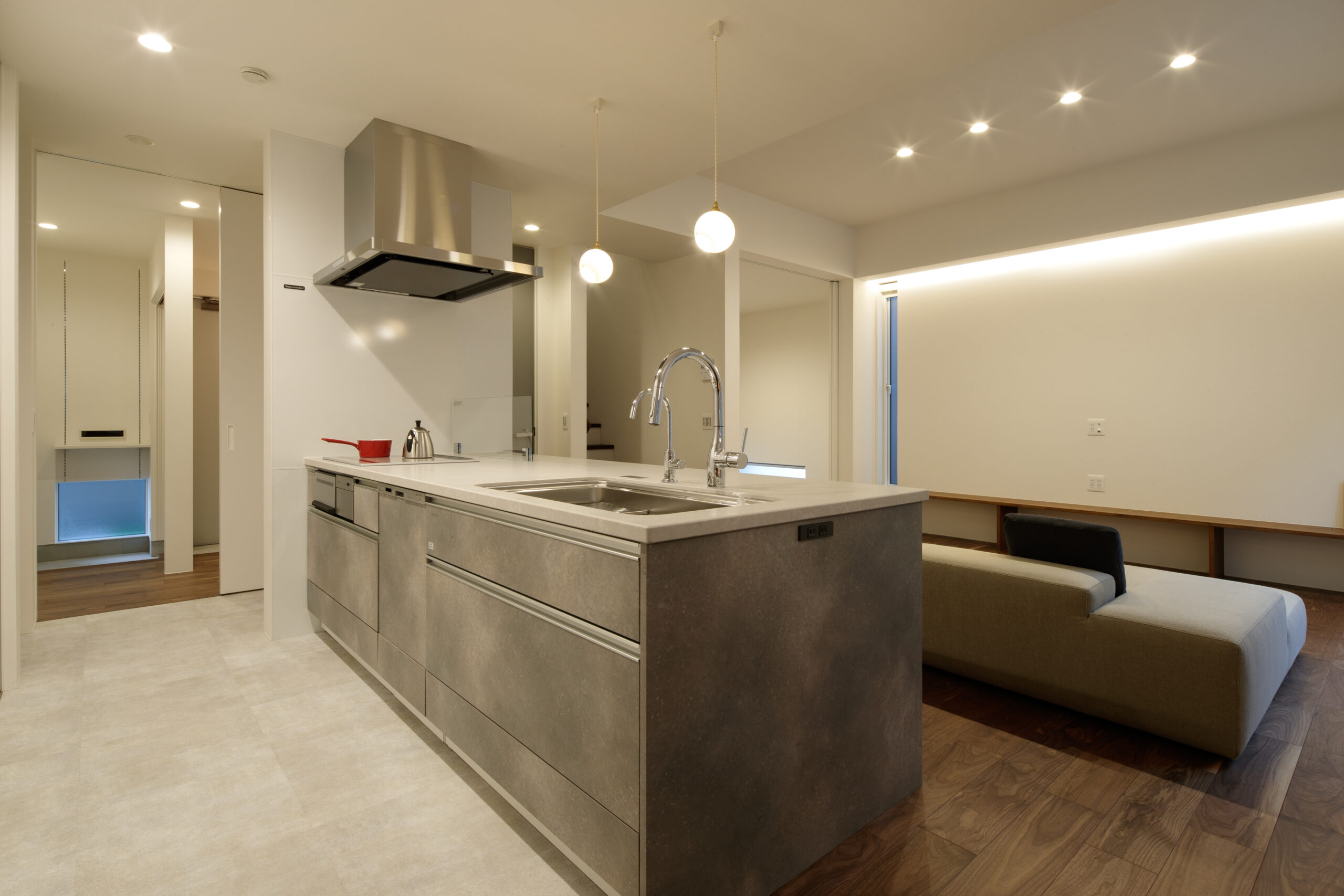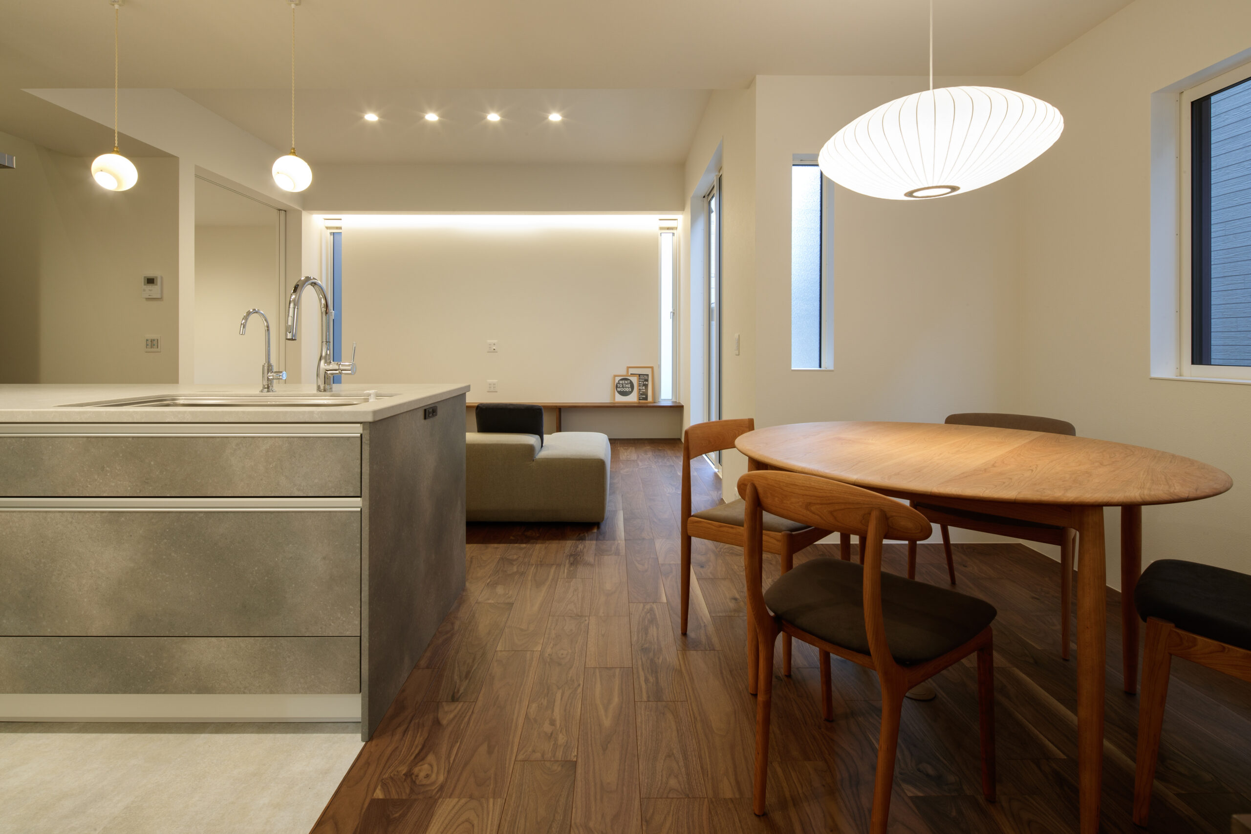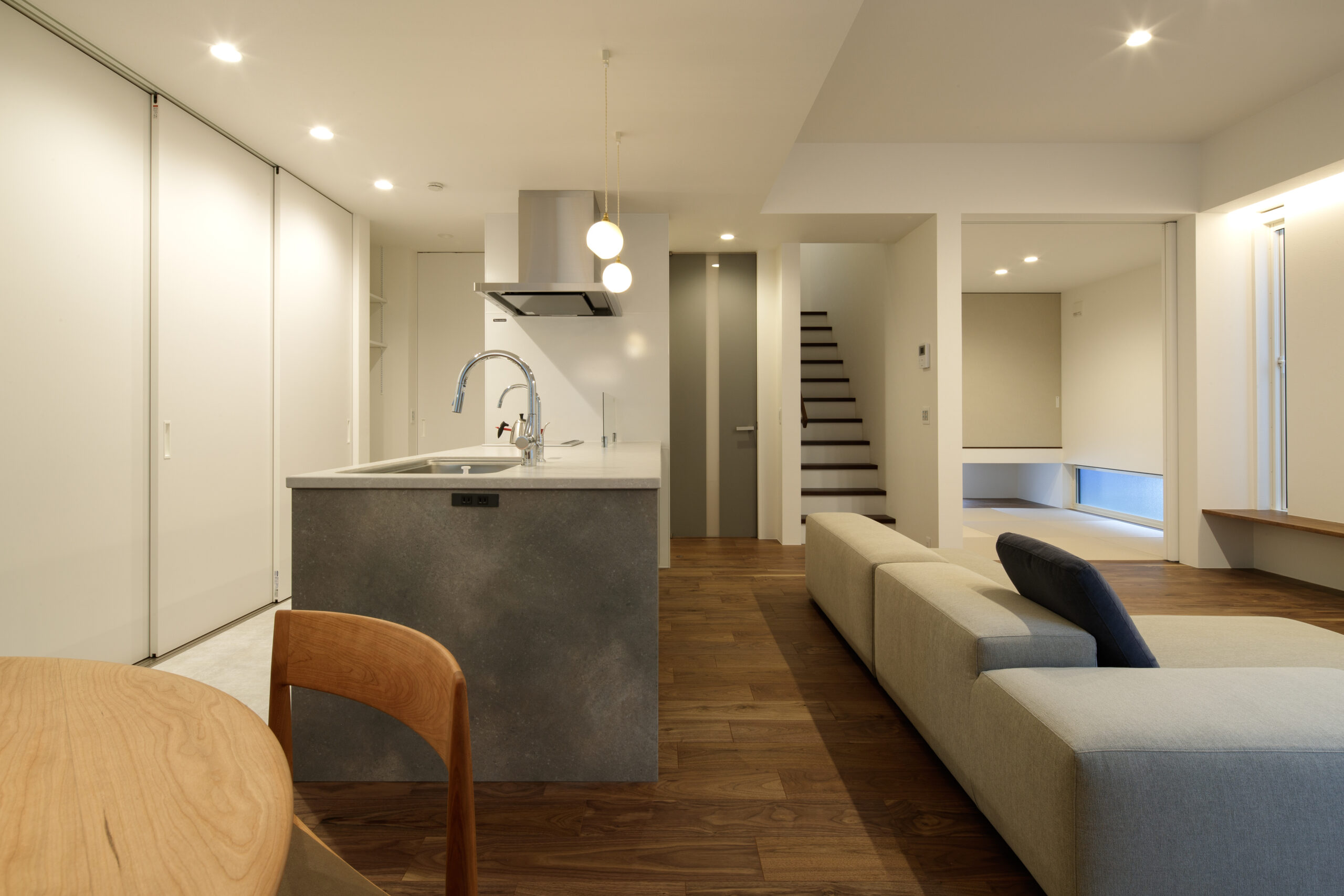 ナチュラルリビング階段勾配天井・高天井和室・タタミスペース回遊動線・動線が良い